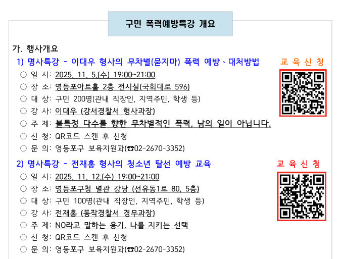 | 구민 폭력예방교육 안내(이대우 형사 명사 특강) | |