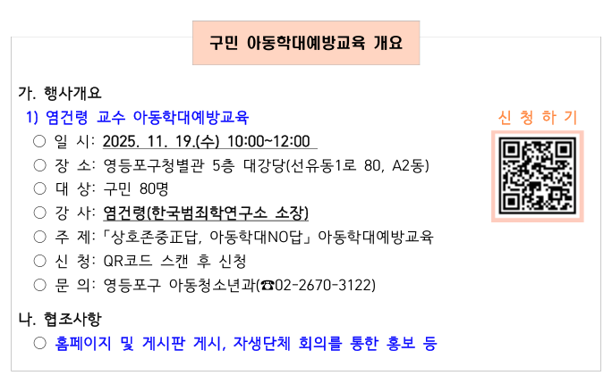 | 구민 아동학대예방교육 안내(염건령 교수 강의) | |