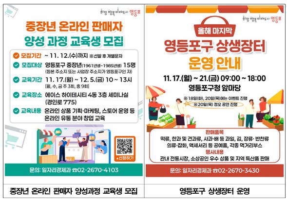 우리동소식 홈 >동주민센터 >신길7동 >우리동소식 >우리동소식 프린트하기 sns 공유하기 페이스북 공유하기 블로그 공유하기 트위터 공유하기 공유하기 공유하기 조회수 3 작성일 2025.11.12 우리동소식 상세보기 - , 제목, 내용, 파일, 조회수, 작성일의 정보를 제공합니다. 영등포소식(11월 셋째 주) 이미지 확대보기 이미지 확대보기 영등포소식(11월 셋째 주) 파일 jpg 파일 1.jpg 미리보기 jpg 파일 2.jpg 미리보기 목록 이전글 임산부 맞춤형 환경보건교육 「나만의 자개모빌 만들기」 안내 다음글 2025년 영등포구 1인가구 소셜다이닝(11월) 참여 신청 안내