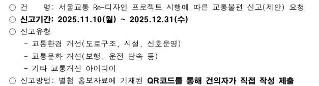 | 서울경찰청 주관 서울교통 Re-디자인 프로젝트 관련 교통불편 제안 참여 안내 | |