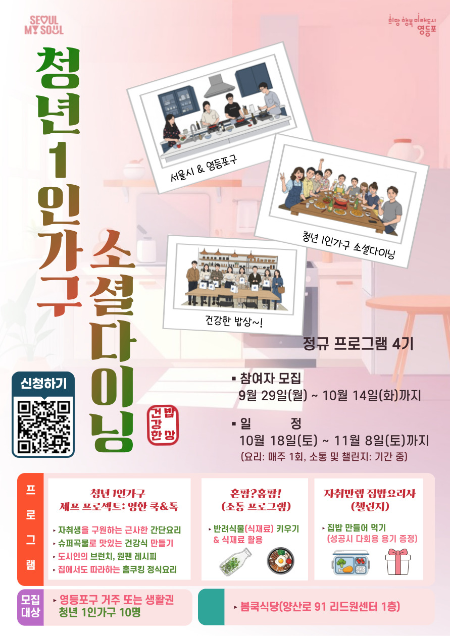 청년 1인가구 소셜다이닝(건강한 밥상) 정규 4기 참여자 모집 안내 | |