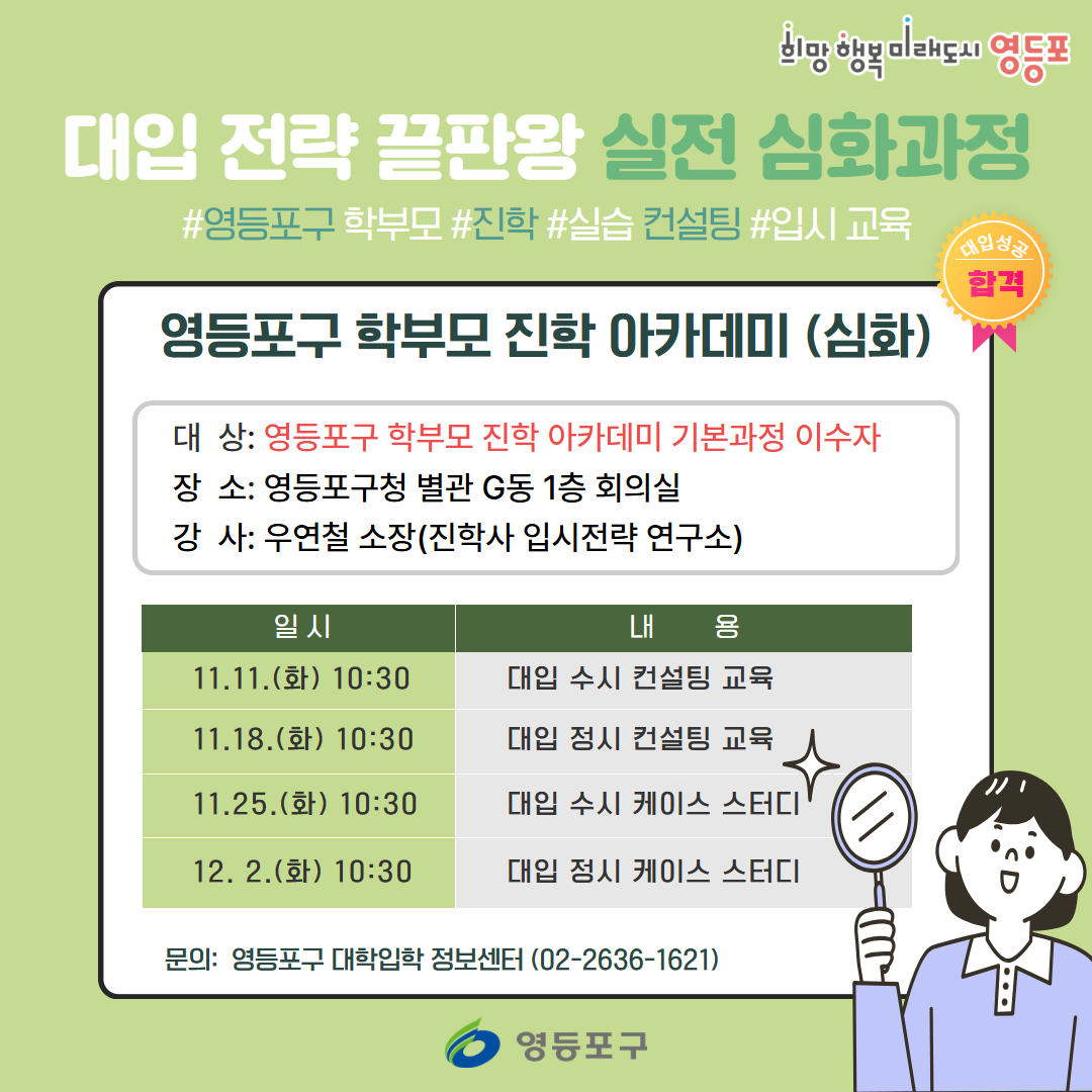 | [영등포구 학부모 진학 아카데미] 대입 전략 끝판왕, 실전 심화과정 운영 | |
