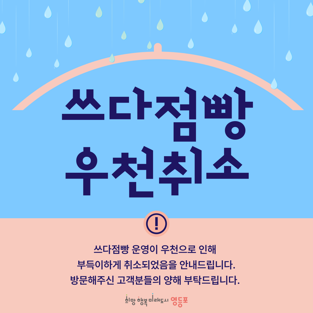 | 금일 11. 27.(목) 쓰다점빵 우천취소 합니다! | |