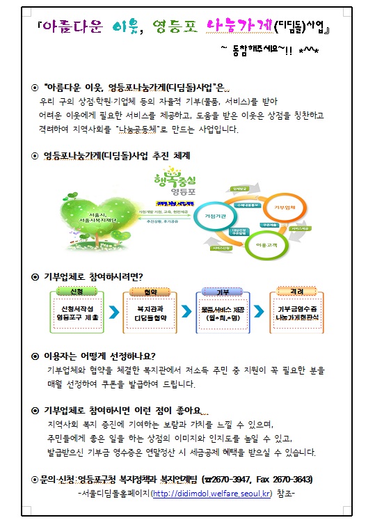 | 『아름다운 이웃, 영등포 나눔가게(디딤돌)사업』 | |