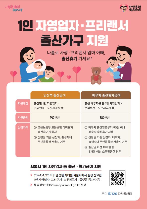 | 1인 자영업자, 프리랜서 등 출산급여 & 배우자 출산휴가급여 지원 | |