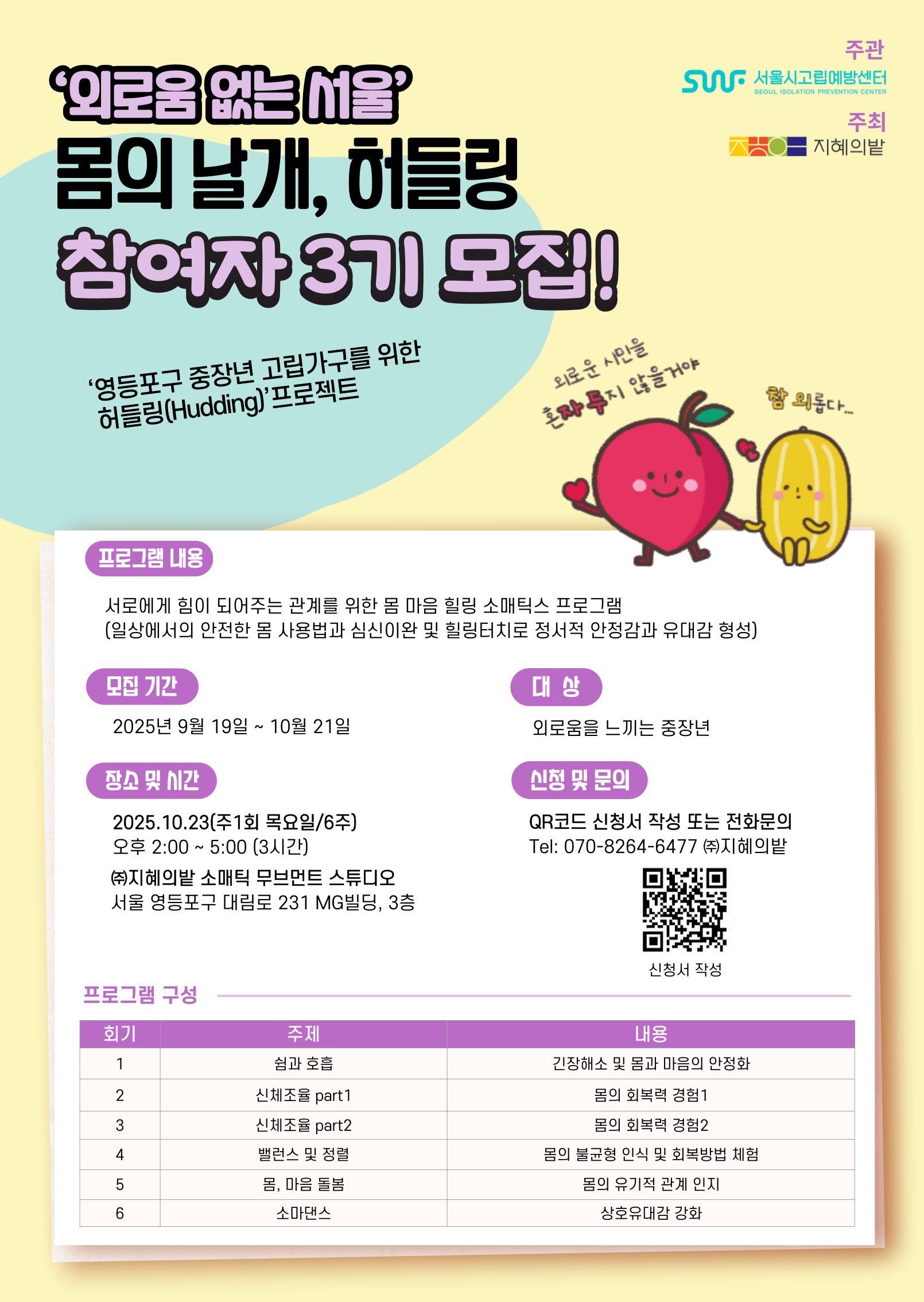 [외로움 없는 서울]_몸의 날개, 허들링 참여자 3기 모집