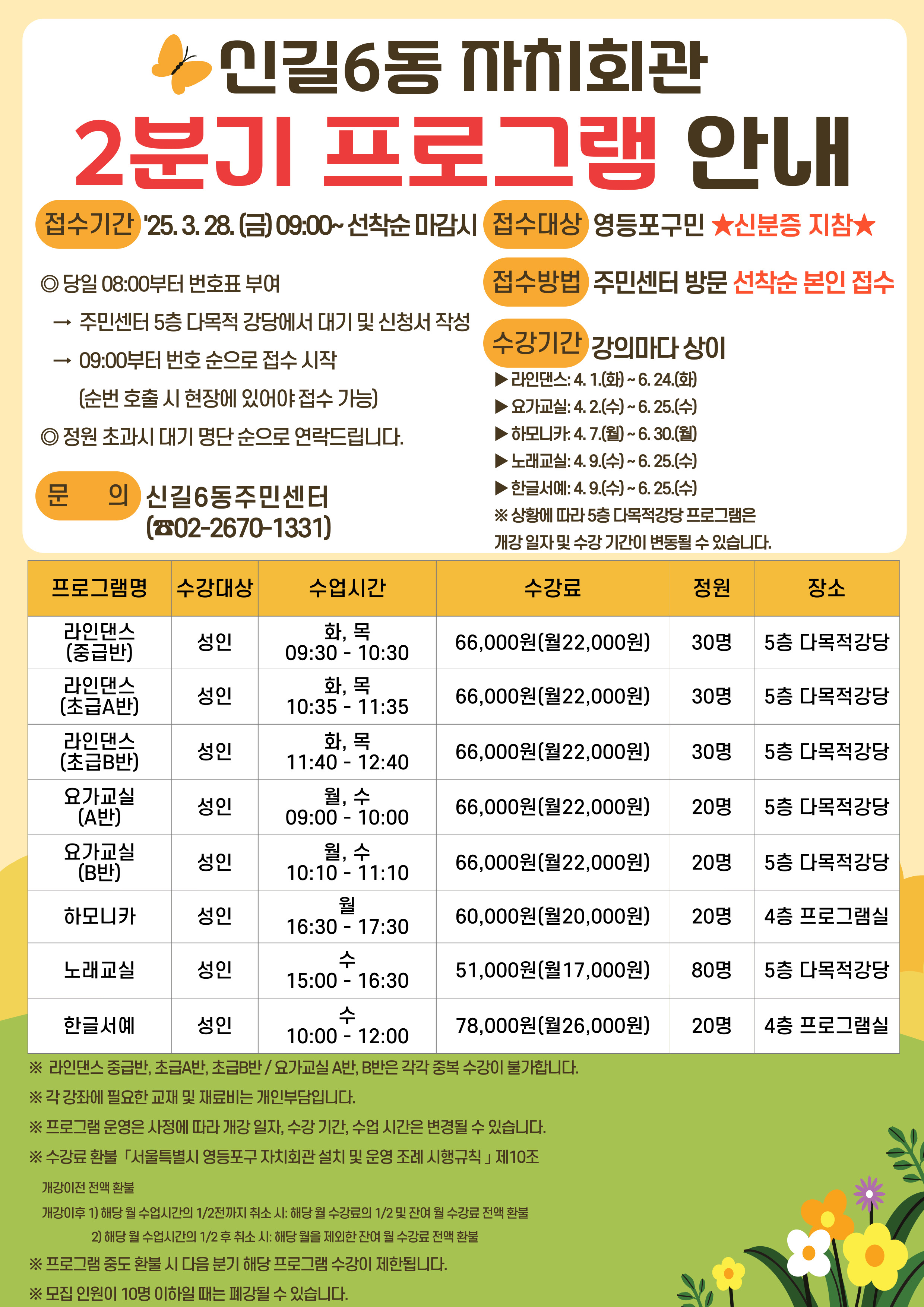 | 신길6동 자치회관 2025년 2분기 프로그램 안내 | |