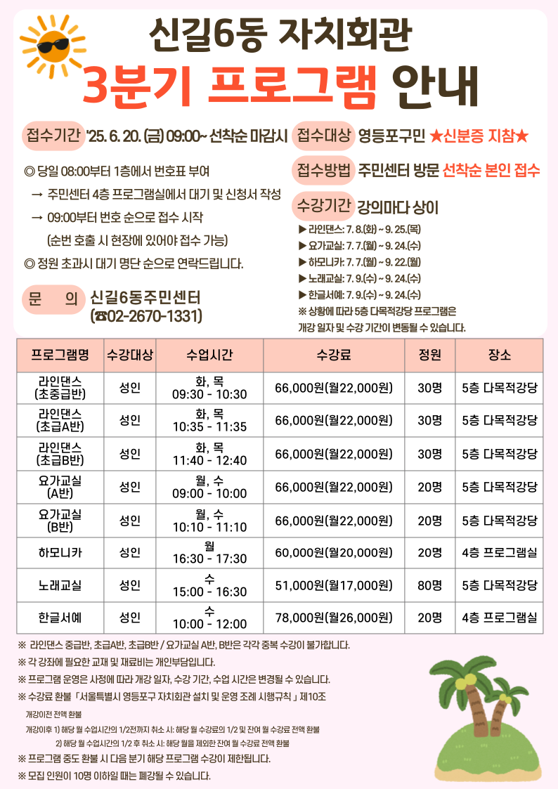 | 신길6동 자치회관 2025년 3분기 프로그램 안내 | |