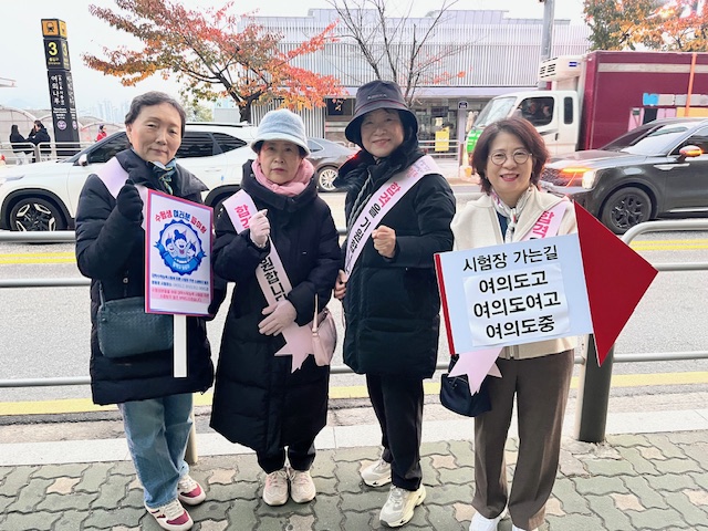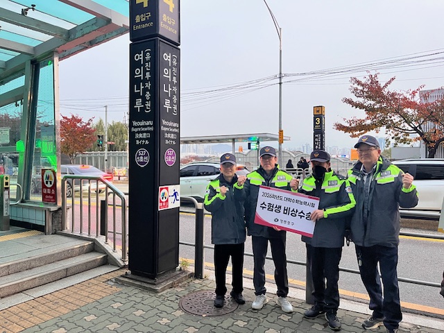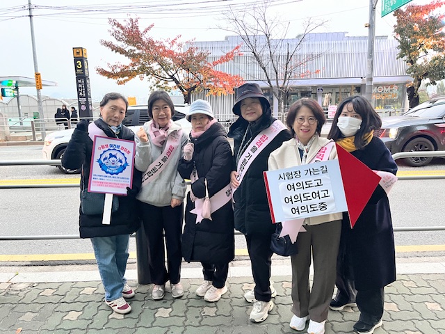 장 소: 여의나루역 4번 출구 참여자: 여의동장 및 직원, 자율방범대, 통친회, 자원봉사회 내 용: 2025학년도 대학수학능력시험 수험생 수송차량 지원 및 응원, 시험장 안내 |