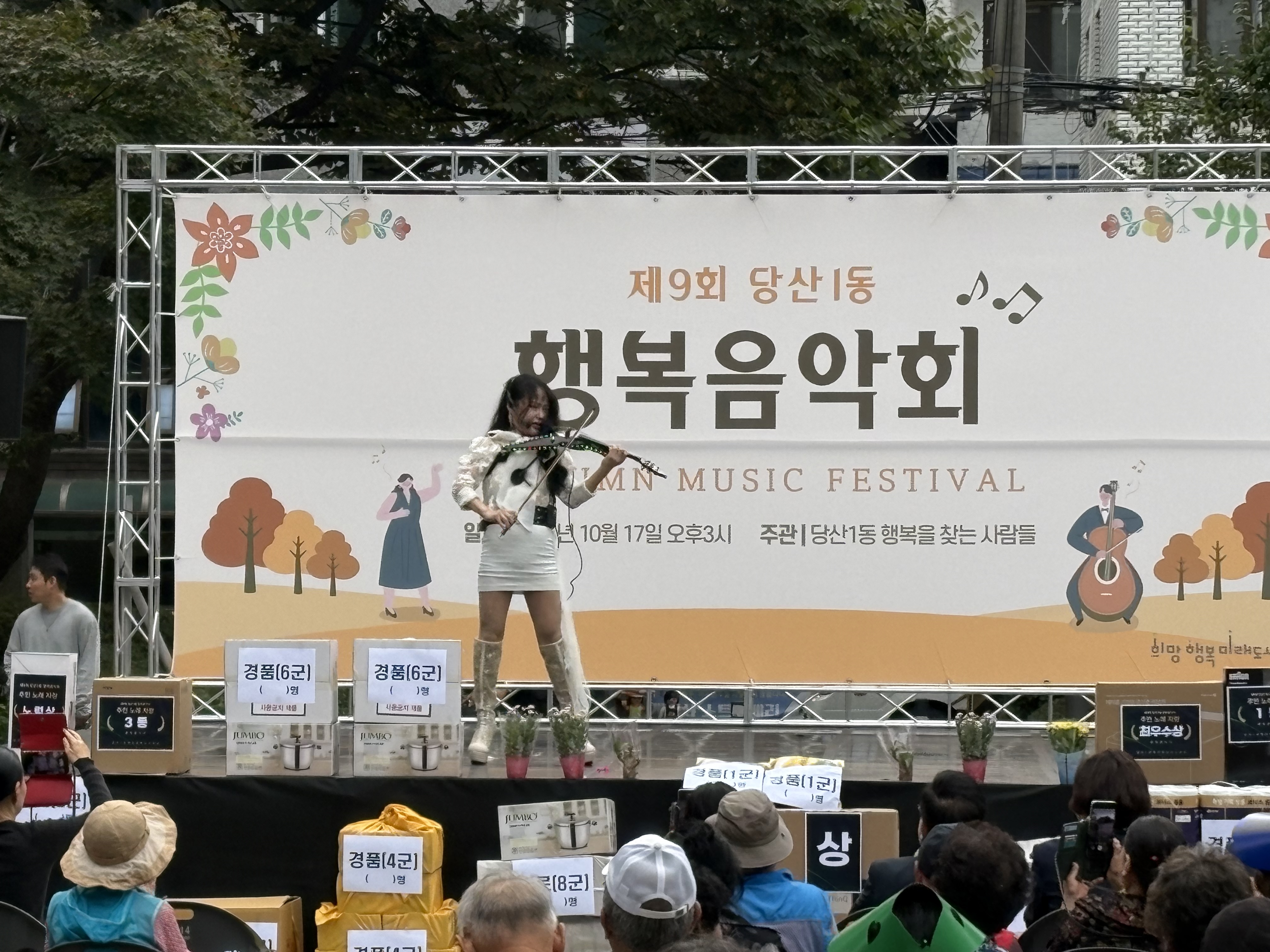 행사를 주관해주신 '당산1동 행복을 찾는 사람들'께 감사드리며, 질서있게 참여하고 즐겨주신 주민여러분께도 정말 감사드립니다. - 일 시: 2025. 10. 17.(금) 15:00~18:00 - 장 소: 당산공원 분수대 앞 특설무대 - 행사내용: ·문화공연(난타, 색소폰, 전자 바이올린, 줌바댄스, 고전무용) ·체험프로그램(명문가정가훈쓰기, 수태볼 만들기 원예 프로그램) ·주민노래자랑 - 주 관: 당산1동 행복을 찾는 사람들(대표 강성욱) |