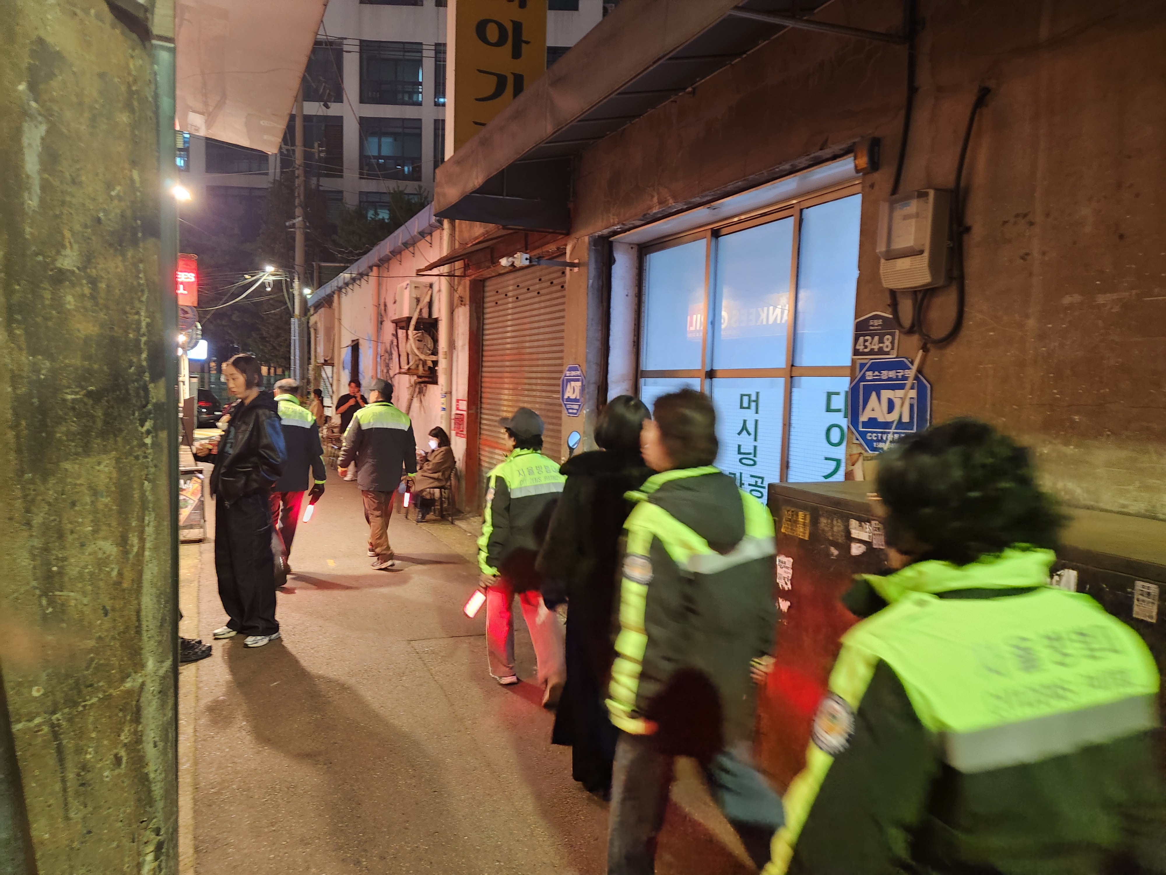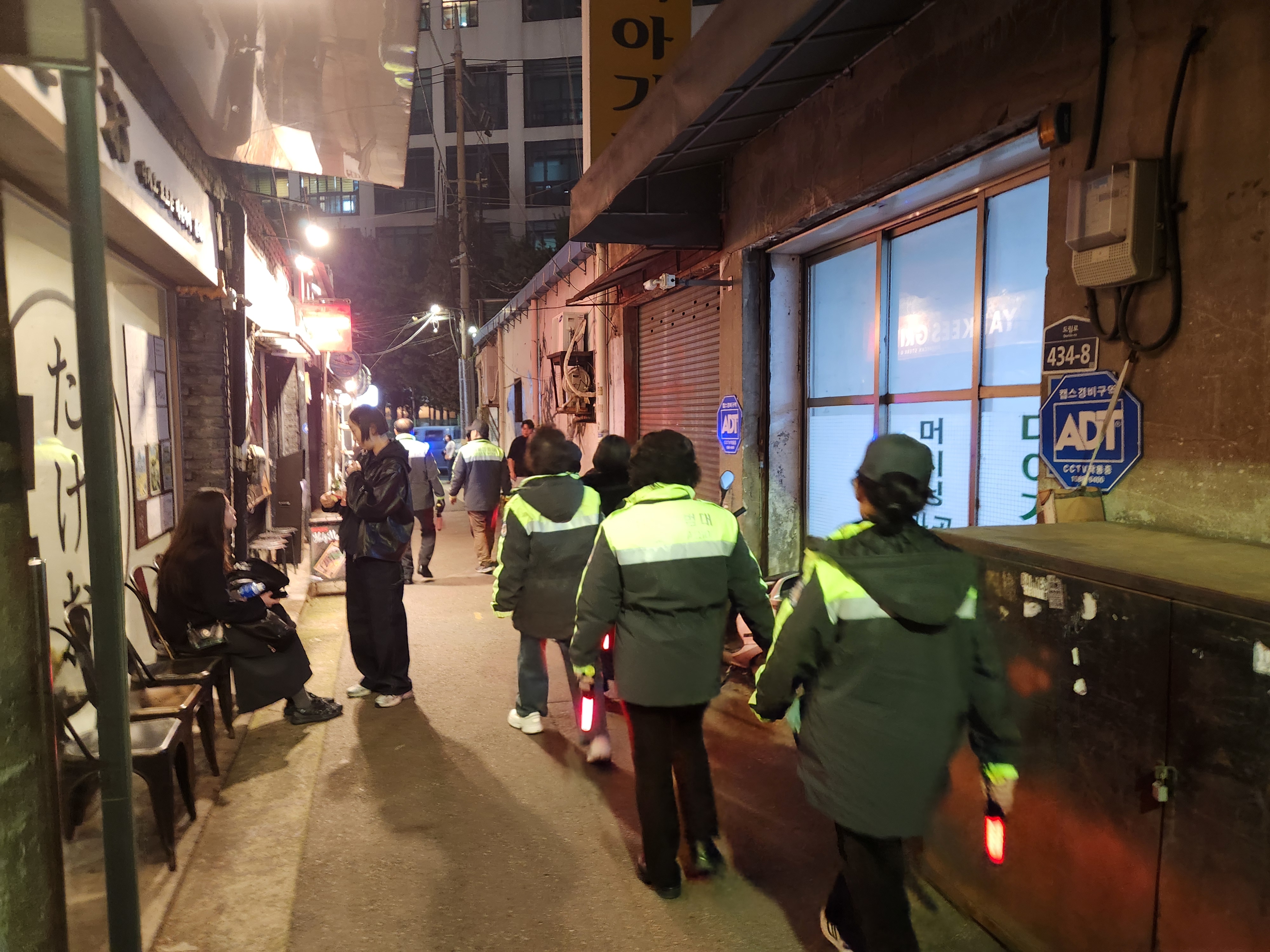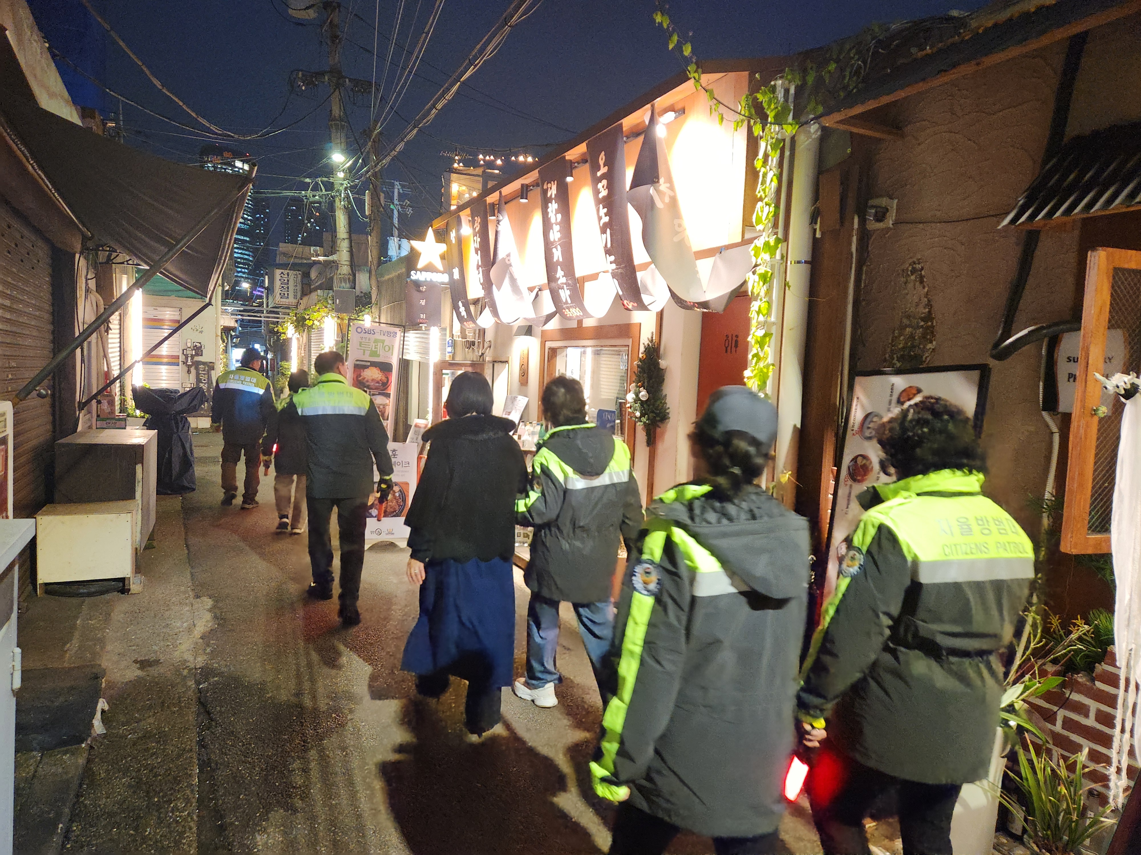 ○ 장소: 문래동 1,2,4가 인파밀집지역 ○ 참여: 문래동 자율방범대 ○ 내용: 현장 순찰 및 안전 위해요소 점검, 인파밀집 상황관리 등 |