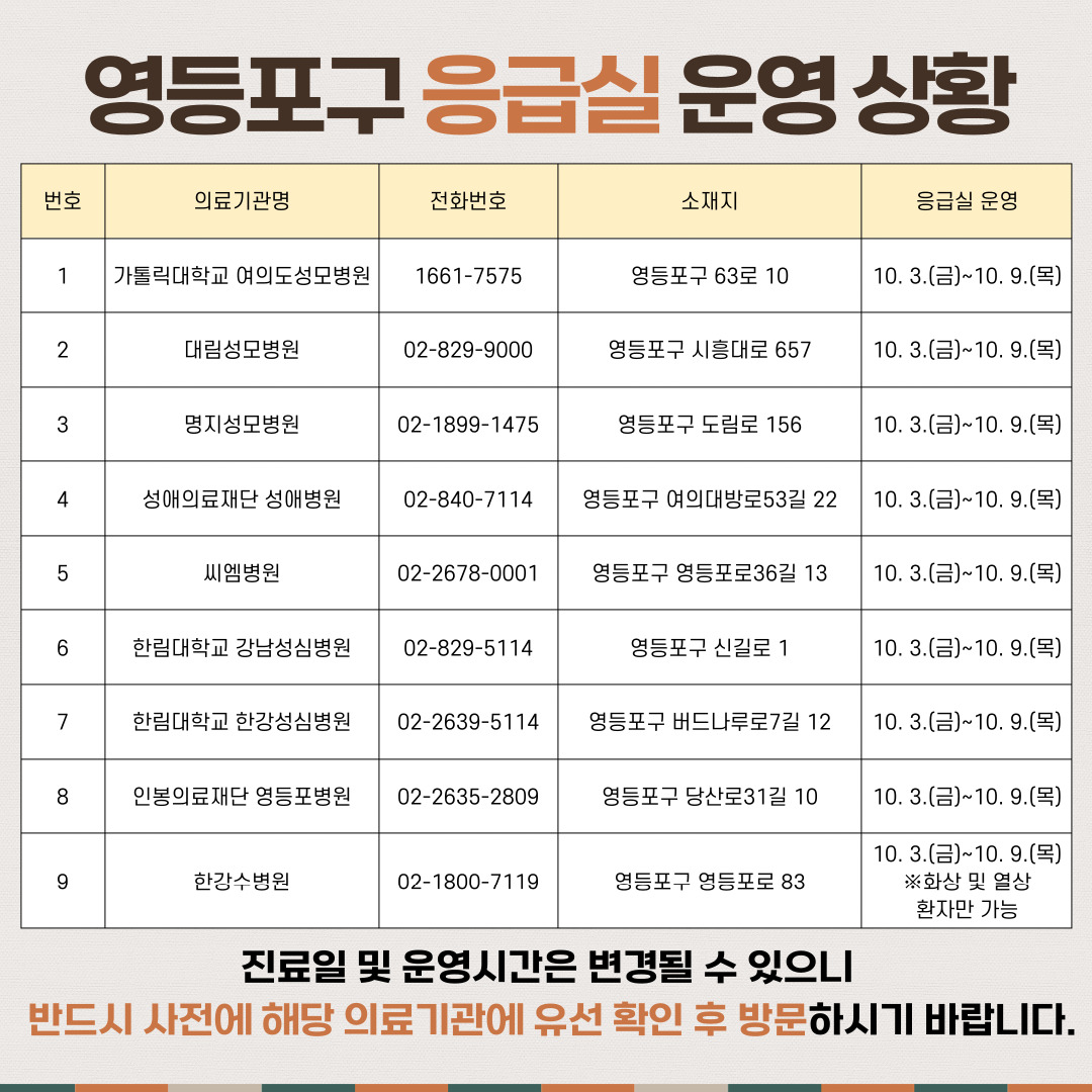 2025년 영등포구보건소 추석 연휴 의료대책 안내