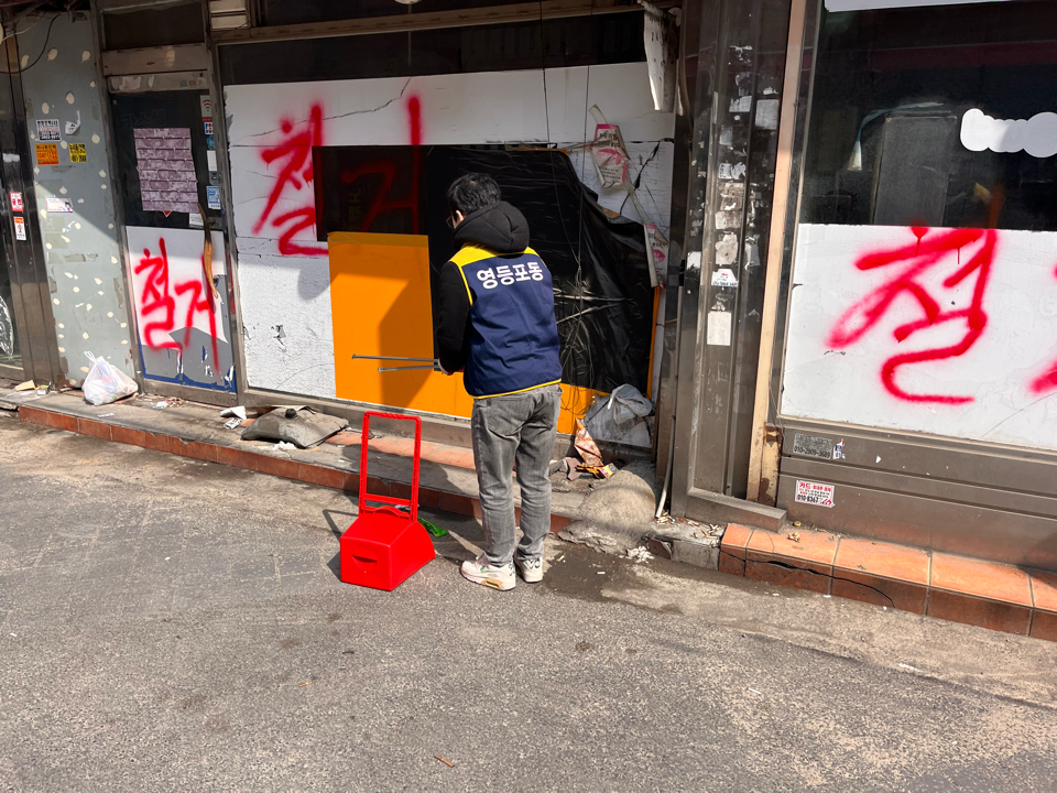 참여대상: 동장 및 주민센터 직원 10여명 추진내용: -무단투기 쓰레기, 미수거 폐기물 청소 -빗물받이, 불법광고물 정비 |
